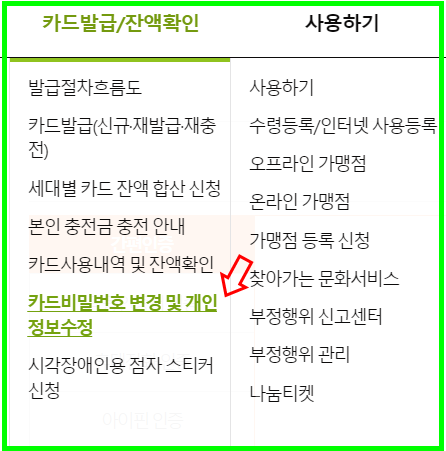 문화누리카드 일반결제 비밀번호 변경하는 방법, 6자리 비밀번호 재설정